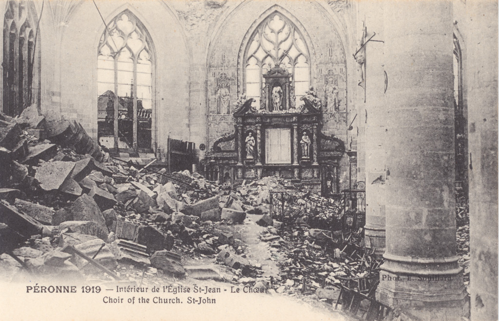 | Légende principale | Péronne 1919 - Intérieur de l'Église St-Jean - Le Chœur Choir of the Church. St-John |