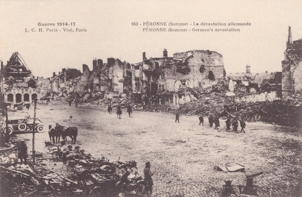| Légende principale | 653 - PÉRONNE (Somme) - La dévastation allemande PÉRONNE (Somme) - German's devastation Guerre 1914-17 |