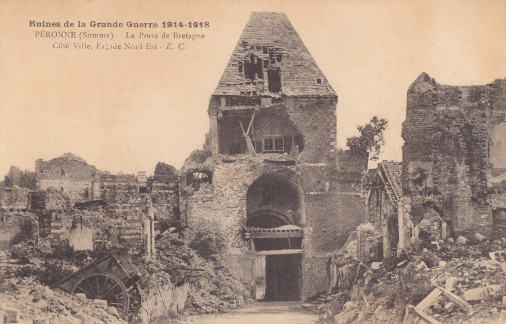 | Légende principale | Ruines de la Grande Guerre 1914-1918 PÉRONNE (Somme). - La Porte de Bretagne Côté Ville, Façade Nord-Est - E. C. |